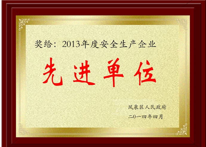 2013年度我廠在全區(qū)進行的安全生產(chǎn)評比當(dāng)中獲得