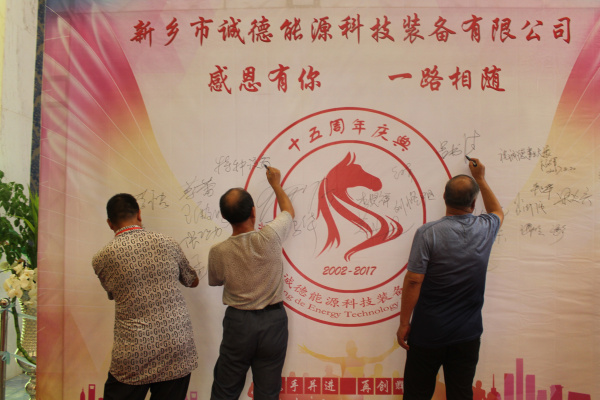 歲月如歌,風(fēng)霜如畫,十五年彈指一揮間,新鄉(xiāng)市誠德能源科技裝備有限公司迎來了15周年的生日。十五年來,誠德人在激烈的市場競爭中奮力拼搏、砥礪前行,接受了市場風(fēng)雨重重的洗禮,取得了累累碩果。為了慶祝這一特殊的日子,2017年8月20日,以“感恩有你,一路同行”為主題的新鄉(xiāng)誠德十五周年慶典活動在金玉滿堂酒店舉行。