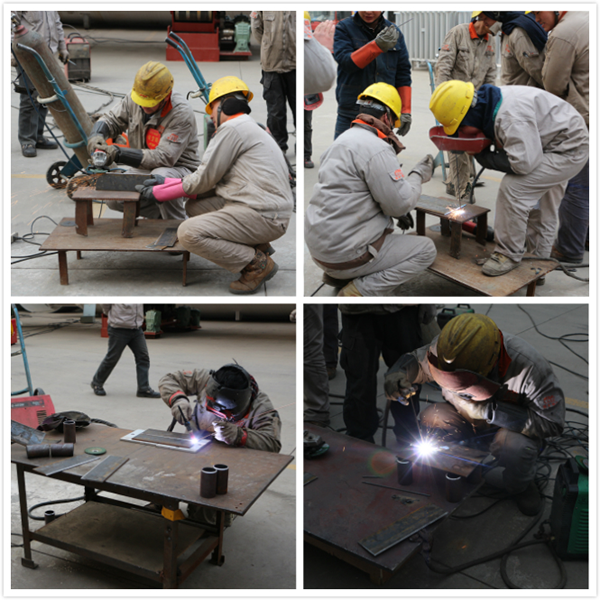 本次大賽的參賽者均來自生產(chǎn)車間,共計(jì)二十余人參賽。首先所有參賽人員來到公司三樓培訓(xùn)室進(jìn)行了為時(shí)二十分鐘的理論考試,接著參賽人員來到辦公樓前開始了實(shí)踐操作比賽,本次比賽的焊工項(xiàng)目有手工焊、二保焊、氬弧焊三項(xiàng)。穿戴好防護(hù)用具,挑好試板,選手們開始了第一步打磨,緊接著各選手按照順序依次到比賽區(qū)域進(jìn)行比賽。一瞬間,電光火石,整個(gè)比賽場(chǎng)地,一片忙碌景象,評(píng)委們?cè)诒荣悎?chǎng)地上認(rèn)真地觀察著選手的一舉一動(dòng)。
