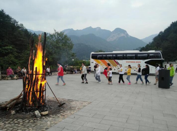晚上大家在篝火前載歌載舞,笑談風(fēng)生。將平時(shí)工作的壓力與生活的煩心時(shí)統(tǒng)統(tǒng)拋之腦后,盡情享受此刻的歡愉,使一直繃著的弦在此刻得到釋放,徹底放松。大家唱著笑著玩著,歌聲在山間來來回回,此起彼伏的回蕩著。