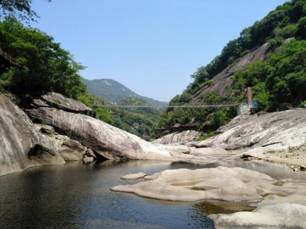 最后一天我們來到了燕子河大峽谷。燕子河大峽谷是華東最后一片原始森林中,峽谷中水流不大的時(shí)候,有的同事直接下水戲耍一番,找找美麗的灘石頭,找找小蝦螃蟹,在大自然的懷抱中其樂無窮。