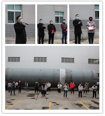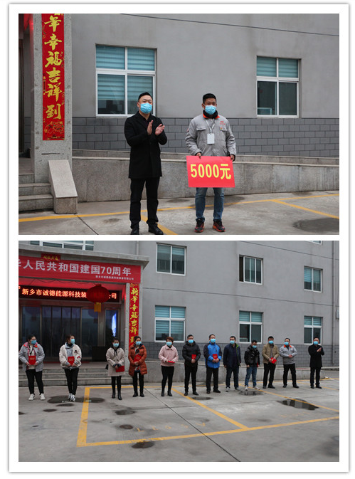 按照上級規(guī)定,疫情期間會議從簡。3月9日下午下班后,誠德公司只召集了各部門負責人和車間各班組長等極少數(shù)人,參加了本月的安全大會。大家分散站在行政辦公樓前面,會議主要內(nèi)容是強調(diào)要將疫情工作放到首位上來,在確保大家安全健康的前提下,再進行日常的工作活動。隨后對優(yōu)秀員工、優(yōu)秀班組長、優(yōu)秀部門等,以及在放假期間服從公司安排來公司加班,為武漢雷神山建設(shè)作出貢獻的員工進行了表彰。