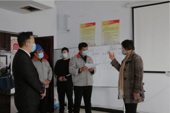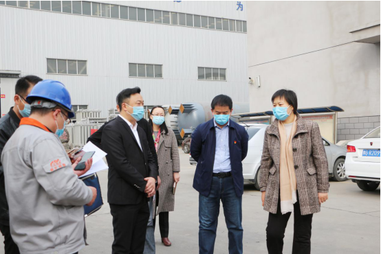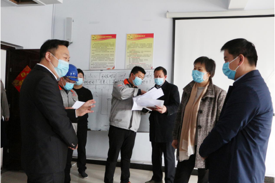 2020年3月16日下午,新鄉(xiāng)市鳳泉區(qū)委常委、組織部長(zhǎng)朱莉、副部長(zhǎng)、耿黃鎮(zhèn)黨委書(shū)記、管委會(huì)書(shū)記等一行人在誠(chéng)德公司總經(jīng)理向文麗的陪同下,蒞臨誠(chéng)德公司視察新冠疫情防控工作和黨建工作。